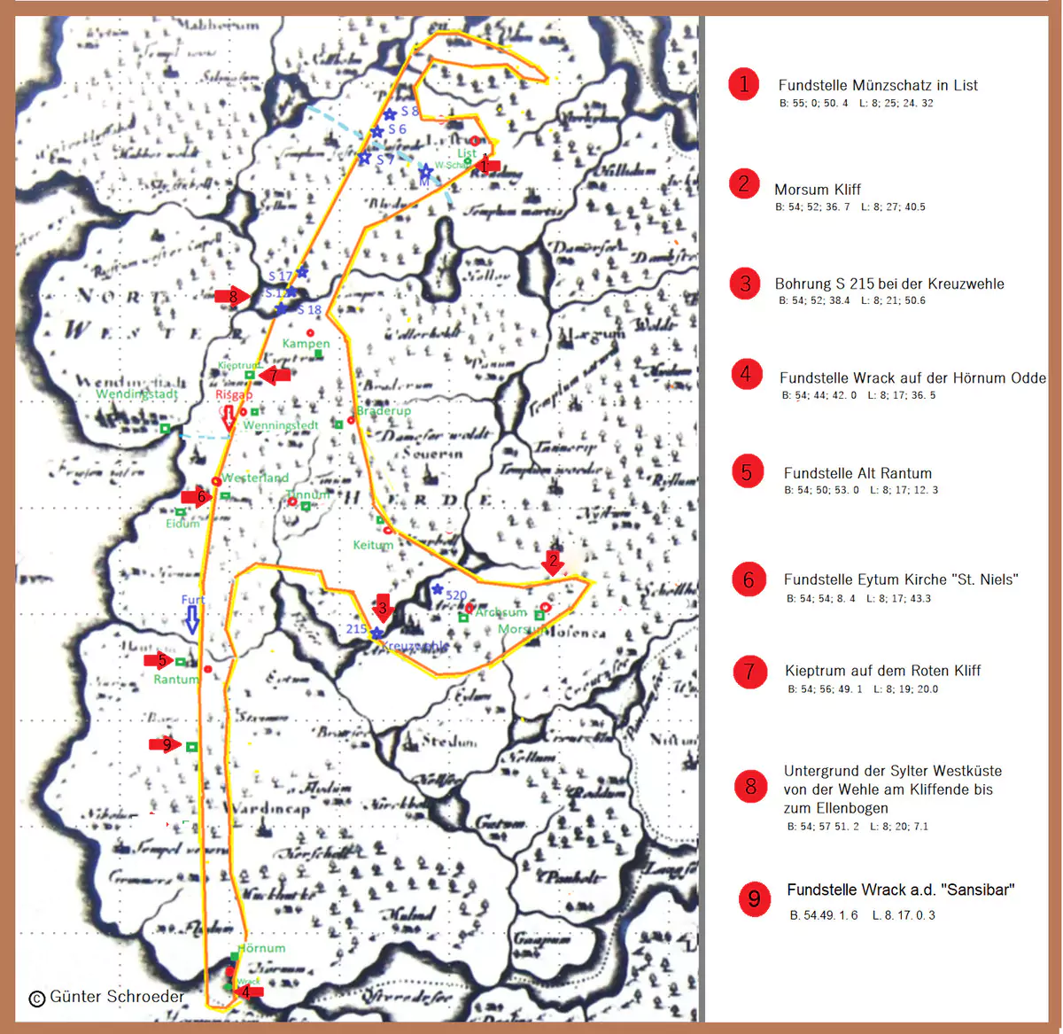 „Im Wattentuul (Wattentorf), der im Wattgebiet, also an der Ostseite der Halbinsel Hörnum ansteht und dessen losgerissene Blöcke am Strand antreiben, fand E. Friedel 1869 eine Reihe Steinsachen, die er uns in der „Zeitschrift für Ethnologie“, Band 1, beschrieben hat“. (weiter)