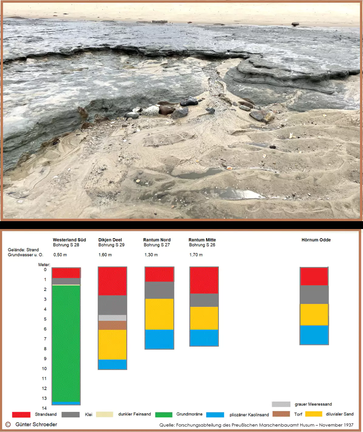 Unter dem südlichen Sylter Inselhaken lassen sich noch zahlreiche Torffundstellen nachweisen