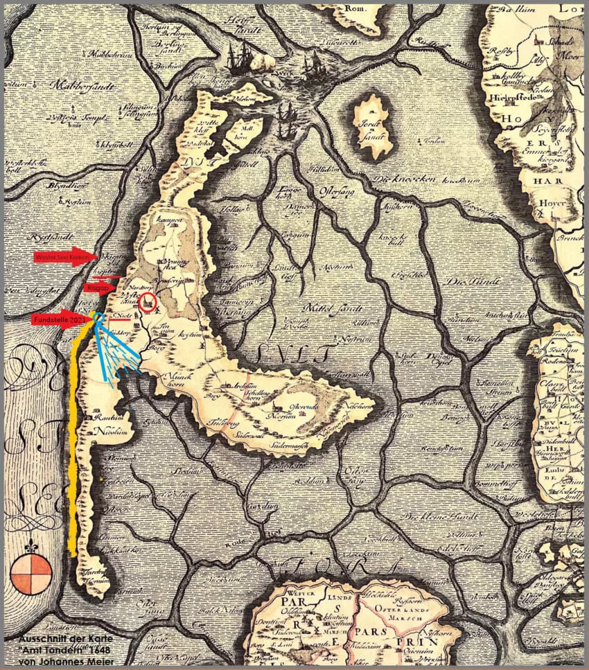 Betrachtet man das Siedlungsgebiet südlich von Westerland bis nördlich vom Roten Kliff in Kampen, im Kontext mit alten Seekarten und Segelanweisungen sowie Bohrprotokolle vom Strand und im Küstenbereich, so findet man wahrscheinlich hier den Schlüssel für einen Rückblick in das frühe Mittelalter auf der Insel Sylt.